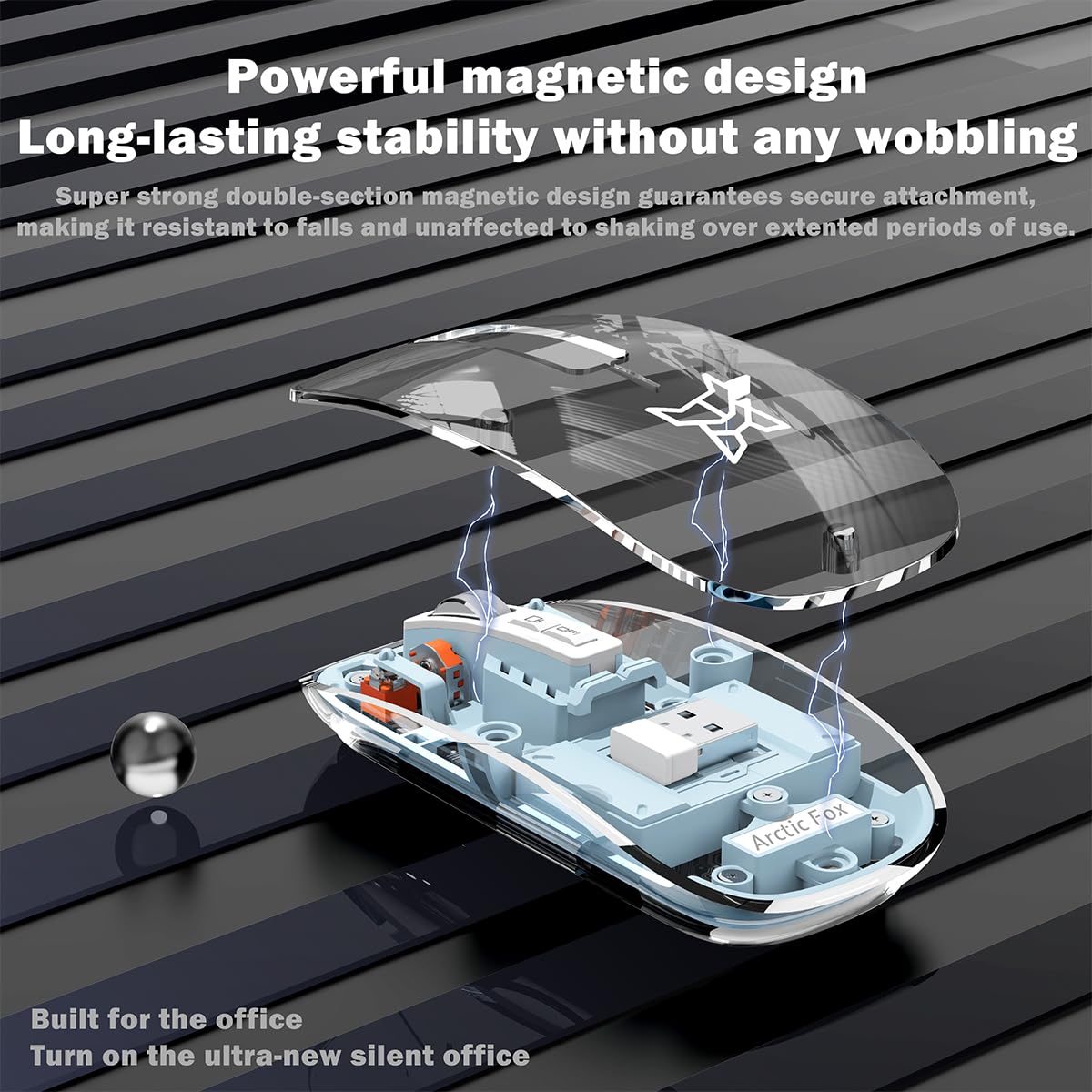 Arctic Fox Pureview Transparent Wireless and Bluetooth Rechargeable Mouse, USB Receiver,LED Battery Magic Silm for Office