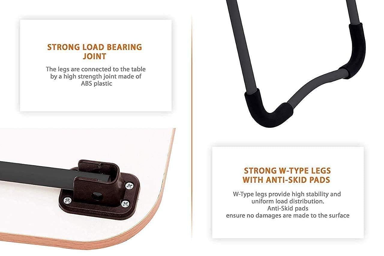 - 【MATERIAL ENVIRONMENTAL PROTECTION】 Gorogue Laptop Bed Table is made of MDF solid wood particle board, safe and environmentally friendly and Manufactured in India. The surface is smooth, non-toxic, moisture-proof, scratch-resistant, high-temperature resistant; while the legs are made of aluminum alloy tube with powder coated finished, more strong and sturdy. Curved ergonomic tabletop designed for sitting. This table will last for a lifetime and will remain corrosion-free.