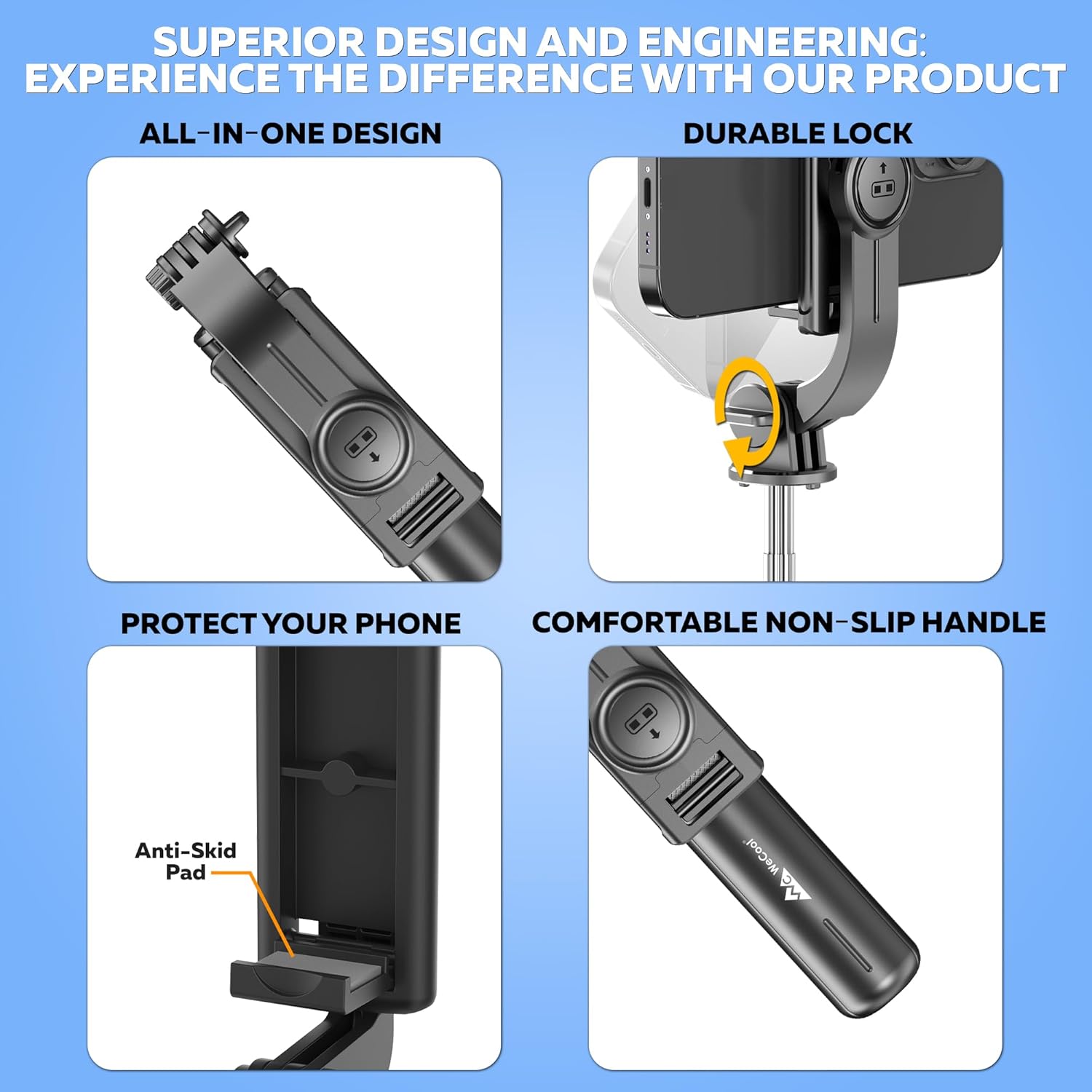 WeCool Bluetooth Extendable Selfie Sticks with Wireless Remote and Tripod Stand, 3-in-1 Multifunctional Selfie Stick with Tripod Stand